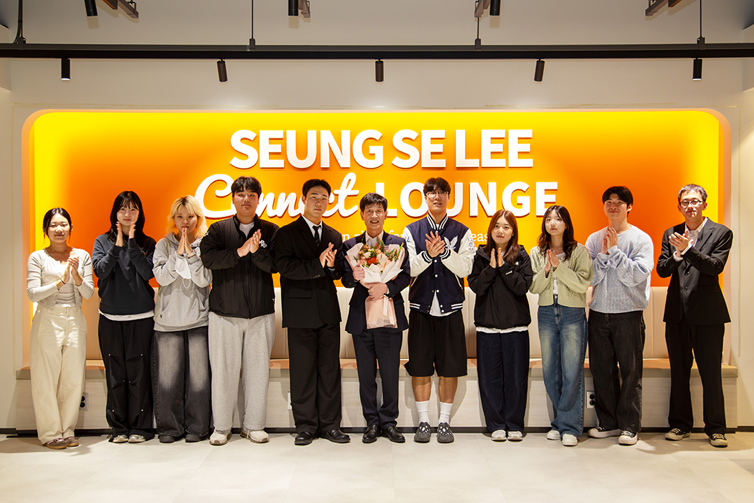 라운지 제막식에는 이승세 회장과 그 가족을 비롯해 교직원, 학생 대표, 동문들이 참석해 공간 조성의 의미를 함께 나눴습니다. 우리 대학은 이 공간이 선배의 나눔 정신을 기리는 동시에, 세대 간 지식과 경험이 자연스럽게 이어지는 소통의 장으로 자리 잡을 것으로 기대하고 있습니다.