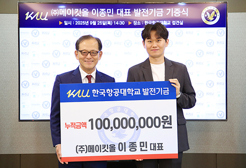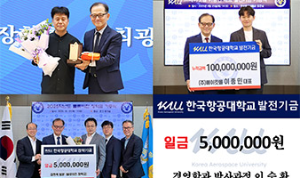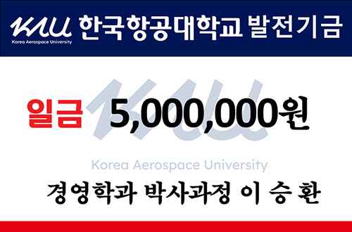 이승환 동문(항공경영대학원 경영전공 석사과정 12학년도 졸업·경영학과 박사과정 수료재학)이 3월 4일 우리 대학에 발전기금 500만 원을 기부했습니다. 이 동문은 모교의 발전에 힘을 보태고자 뜻을 전하며, 모교와의 인연을 이어가겠다는 의지를 밝혔습니다.