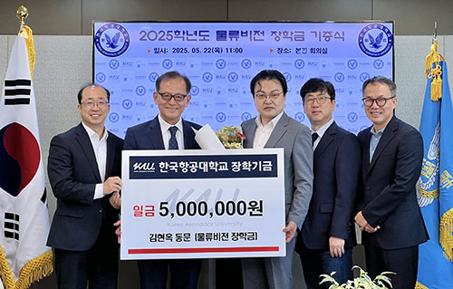 김현옥 동문(항공관리학과 91·㈜한국머스크 부사장)이 5월 22일 우리 대학 물류전공 후배들을 위한 장학금 500만 원을 기부했습니다. 우리 대학은 이번 장학금을 ‘물류비전 장학금’으로 조성해 학생들의 학업 지원과 글로벌 통합물류 인재 양성을 위해 사용할 예정입니다.
