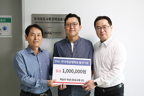 우리 대학 백승우 학생(항공교통전공 22)이 7월 23일 항공교통관제교육원 기자재 보강과 교육환경 개선을 위해 100만 원을 기부했습니다. 백승우 학생은 재학 중 매달 1만 원씩 발전기금을 기부하고, 2024년에는 자신이 받은 외부 장학금 100만 원을 후배들에게 전달하는 등 자발적인 학생 기부 문화를 확산하고 있습니다.